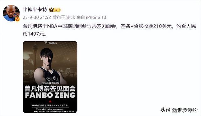 有球迷吐槽篮网这个设定吃相太难看,若是割一波韭菜然后裁掉,那么还不如去北京现场看曾凡博,纯是消费曾凡博。