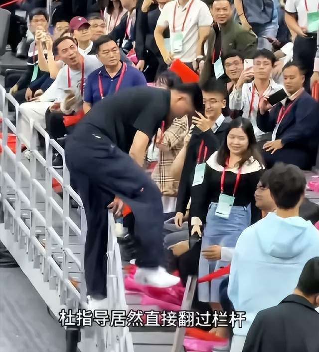 有趣!赛后杜锋翻越围栏,和一位领导亲切寒暄,球迷:会做人