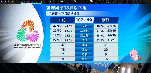 末节决战,浙江队追分势头不减,随着陈子翔被吹违体犯规,李悦洲2罚1中,帮助浙江队追到86-86平。危难时刻,山东队还是稳住阵脚,连拿6分,保持优势。不过,浙江队是真的难对付,他们愣是又追上来了。好在山东队稳住了,没有掉链子,最终以107-99险胜浙江队,打进决赛,与广东队争夺金牌。